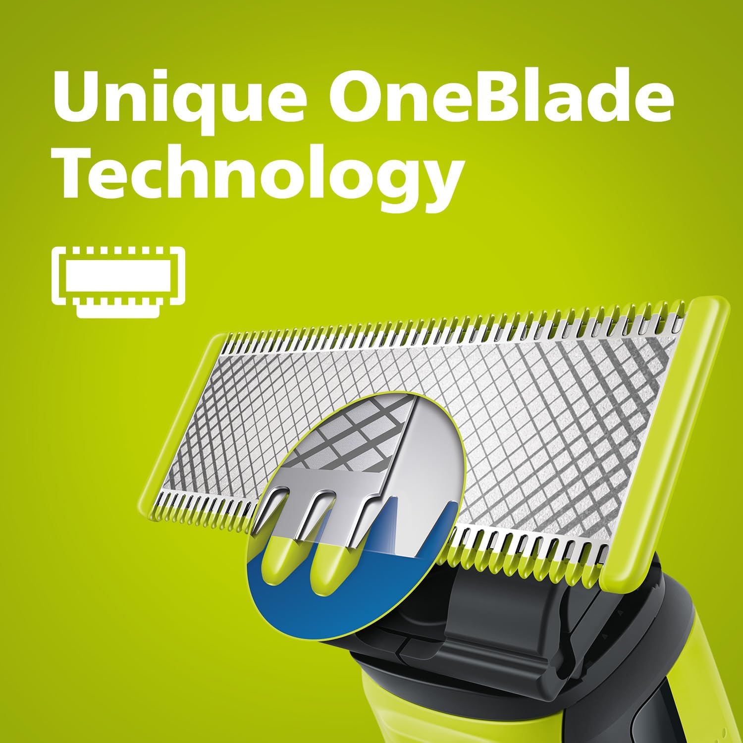 • ماكينة ون بليد من فيليبس هي الطريقة الثورية للحلاقة، مع تقنية فريدة تضمن حلاقة وتشذيب وتحديد أي لحية بأي حجم، دون جروح أو تهيج.